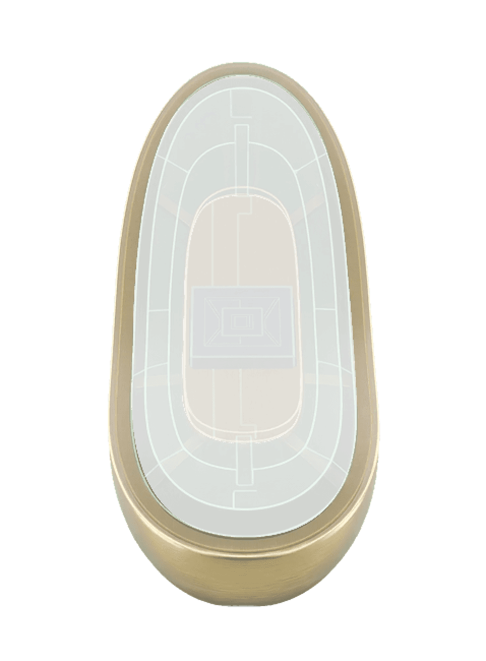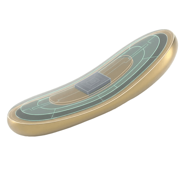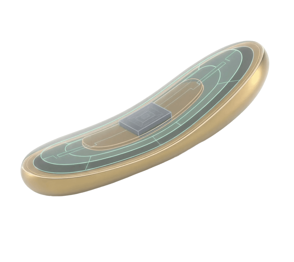 The outer shell is shaped to rest naturally on the temple, minimizing movement, pressure, and distraction.