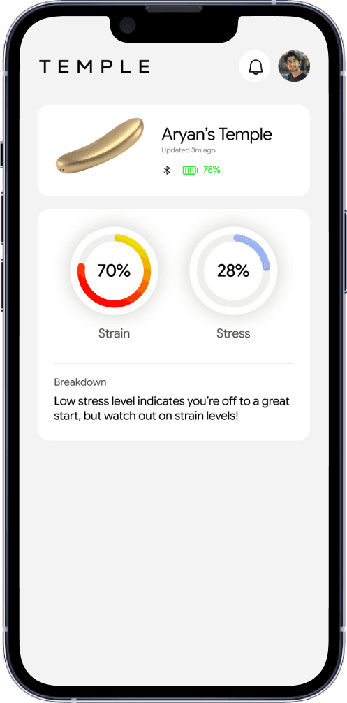 Temple tracks patterns in brain blood flow throughout the day. This helps surface how your brain responds to work, stress, sleep, movement, and recovery — not as isolated moments, but over time.